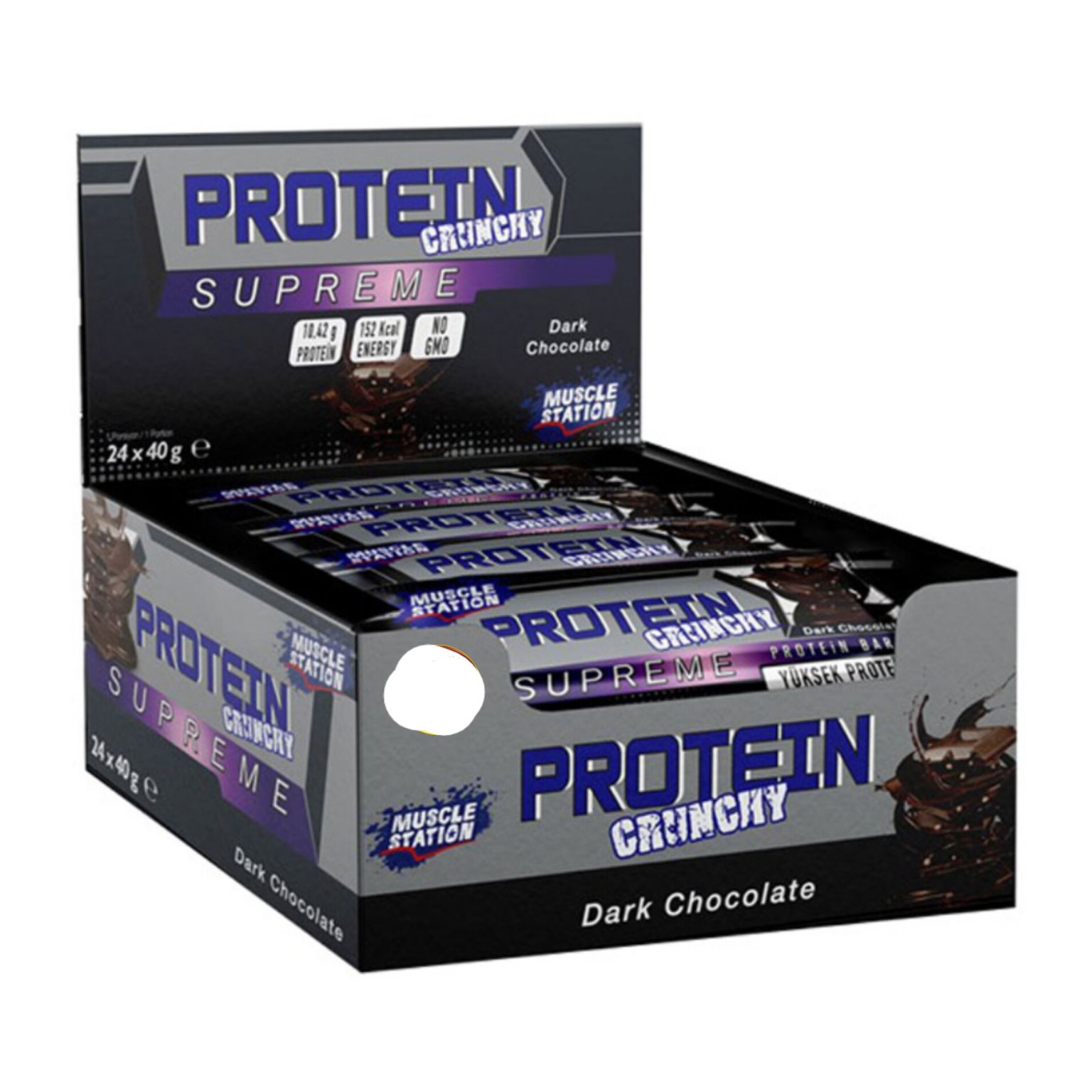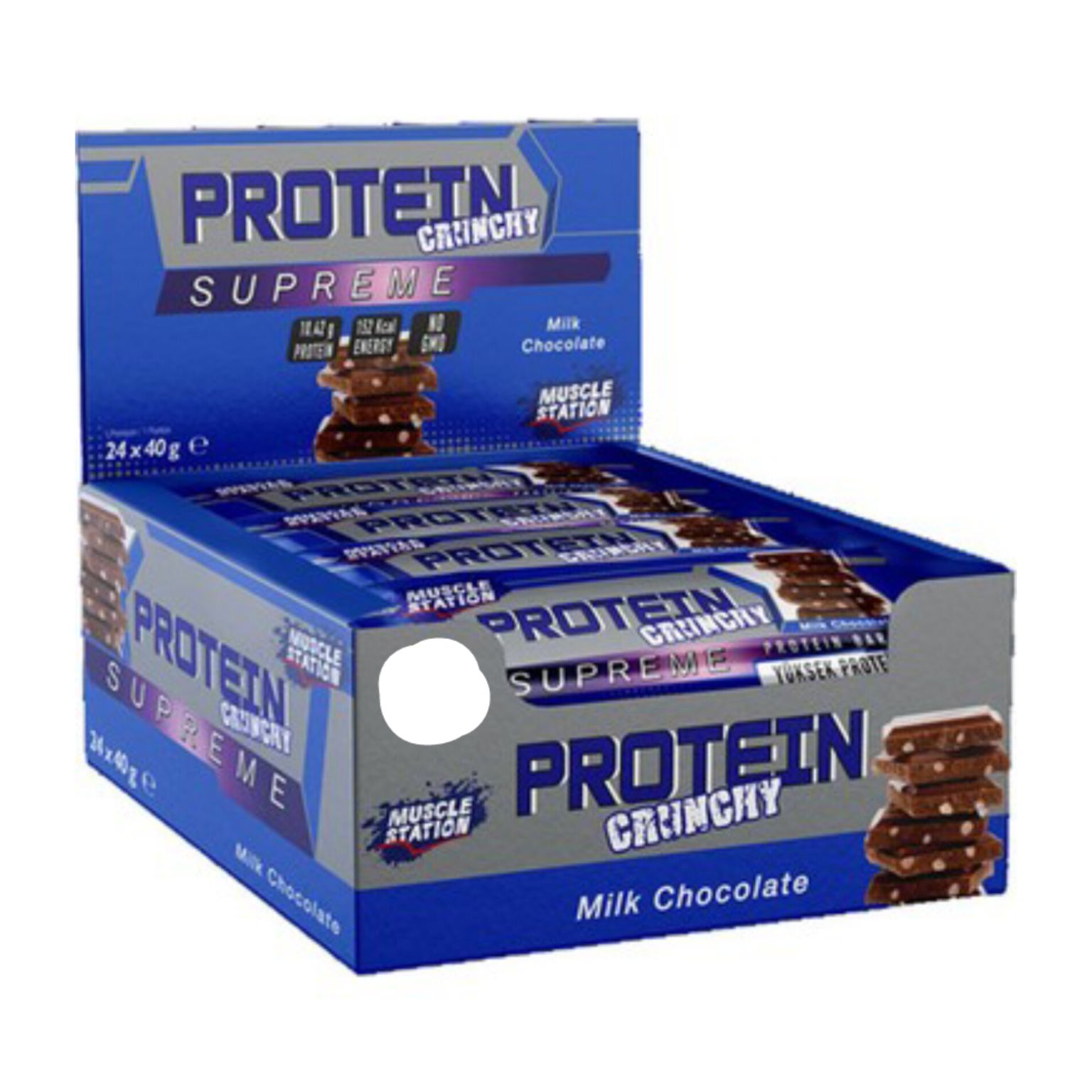 پروتئین بار کرانچی سوپریم شکلات سفید مدل Muscle Station supreme باکس 24 عددی (40 گرم)
