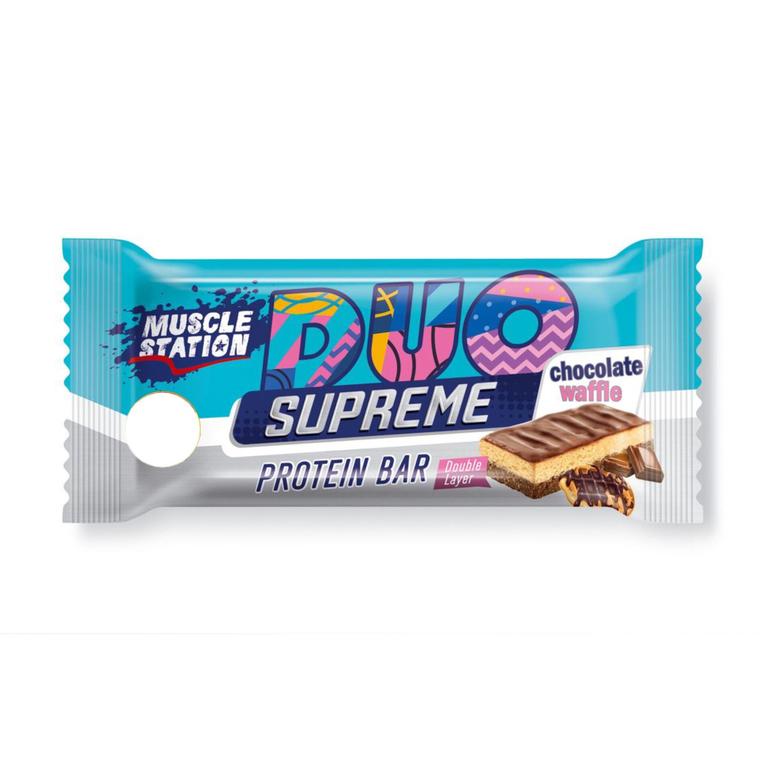 پروتئین بار ماسل استیشن سوپریم با مغز شکلات و وافل باکس 24 عددی supreme muscle station