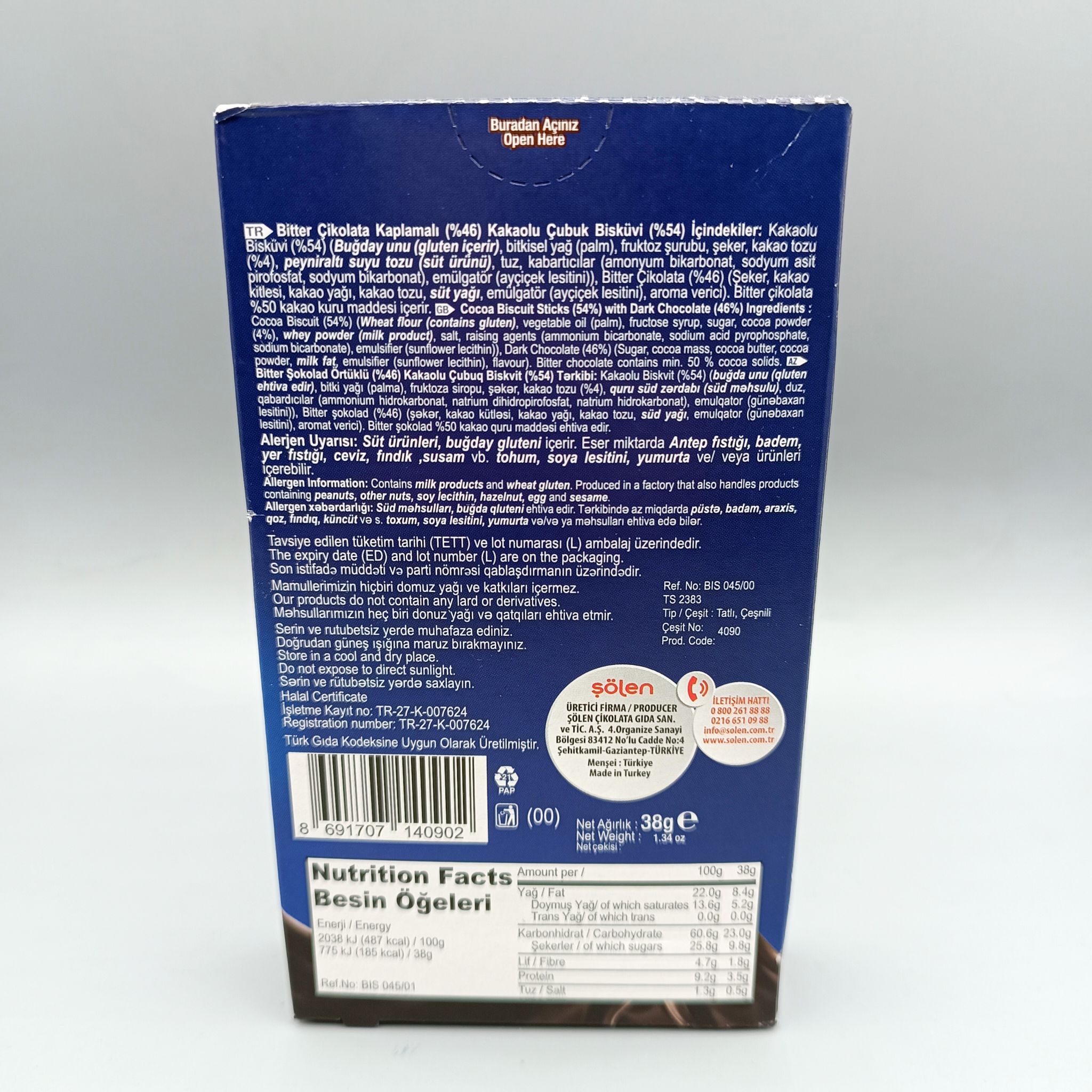چوب شور شکلات تلخ بیسکولاتا (34 گرم) biscolata
