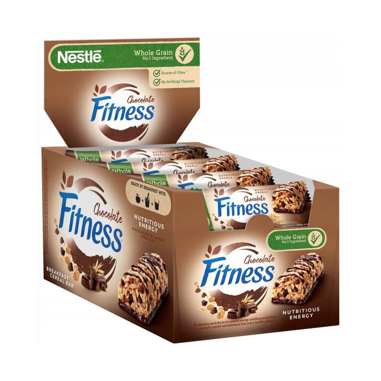 نصف از محتوای شکلات بار فیتنس شکلاتی نستله از غلات سبوس دار با کیفیت تشکیل شده و منبع غنی از فیبر میباشد. این شکلات بدون رنگ و طعم دهنده های اضافی تهیه شده و از مواد اولیه با کیفیت تهیه شده است.